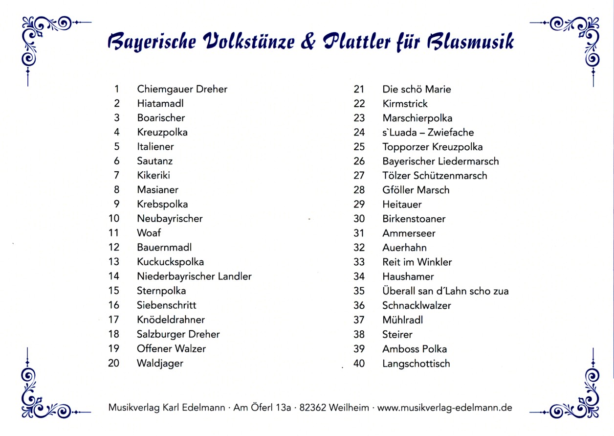 Die vorliegenden Volkstänze und Plattler sind unter Berücksichtigung der Stichnoten bereits in kleiner Bläserbesetzung spielbar.