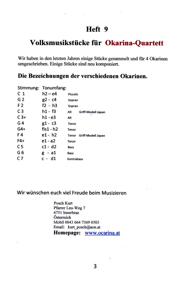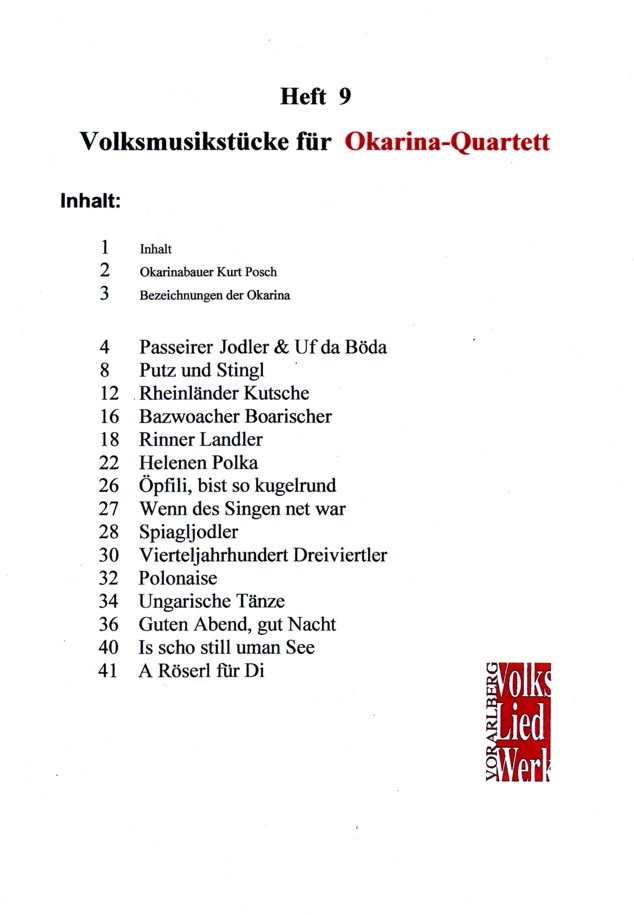 Heft 9 Volksmusikstücke für Okarina-Quartett