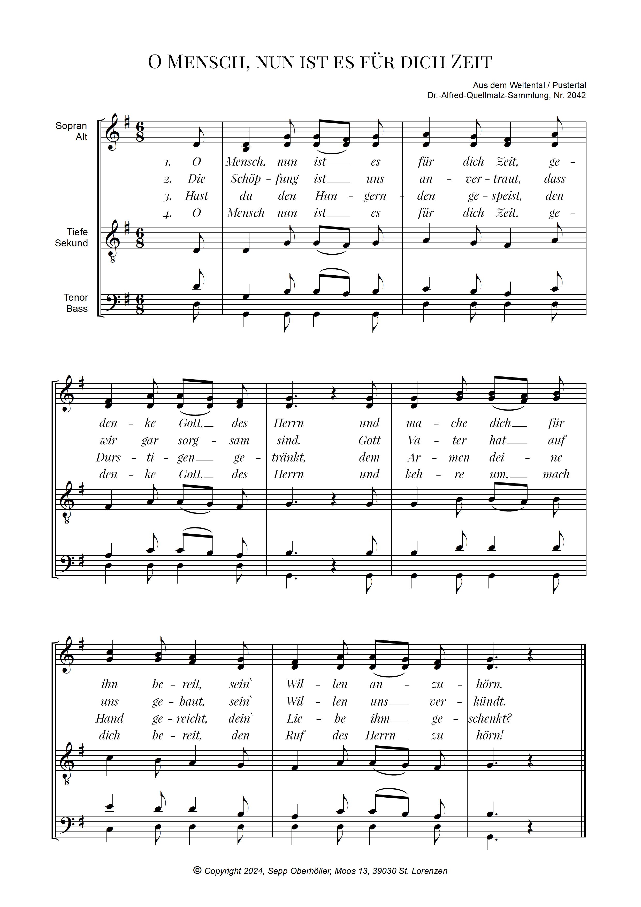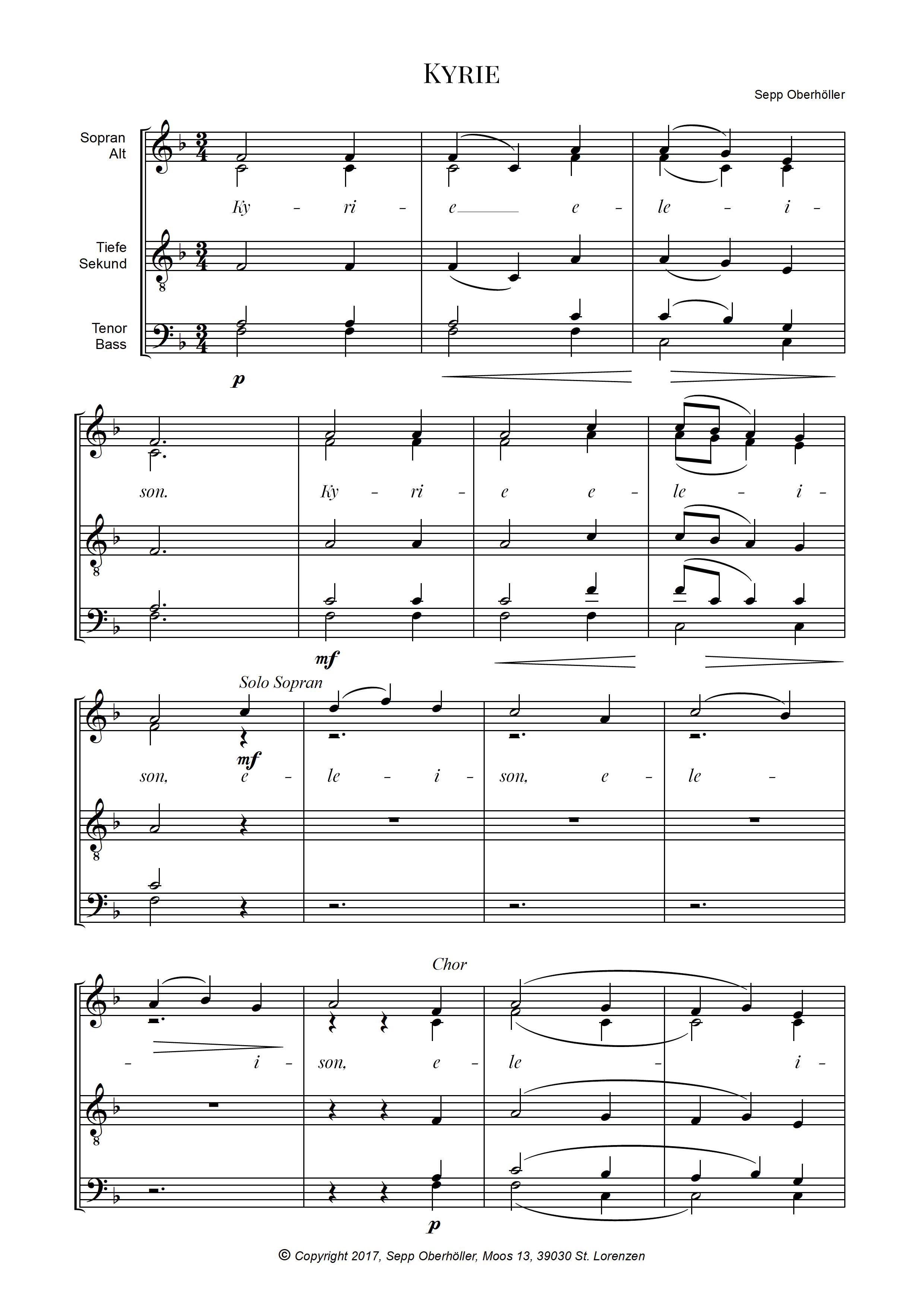 - Notenheft 3: Dreifaltigkeitsmesse von Sepp Oberhöller. Lateinische Messe im alpenländischen Stil, Gesangspartitur für gemischten Chor.
